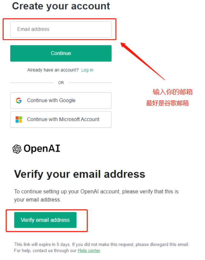 2.然后输入邮箱地址和验证码,点击Continue继续,接着输入密码,点击邮箱验证链接即可