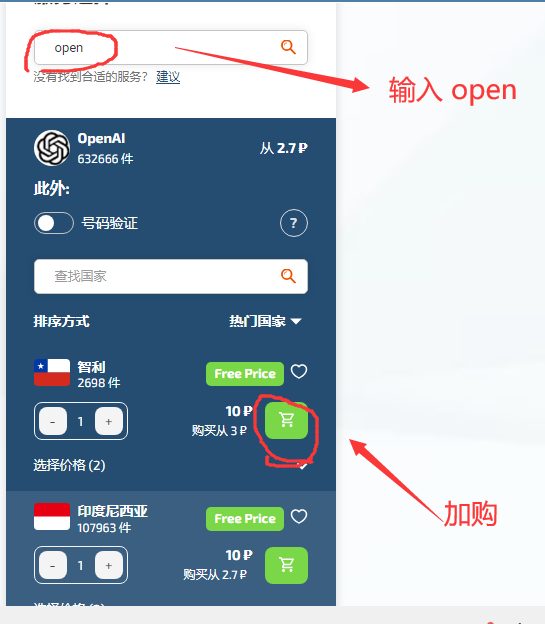6.然后左边服务搜索网栏里输入Open,选印度或者印度尼西亚,因为它便宜。